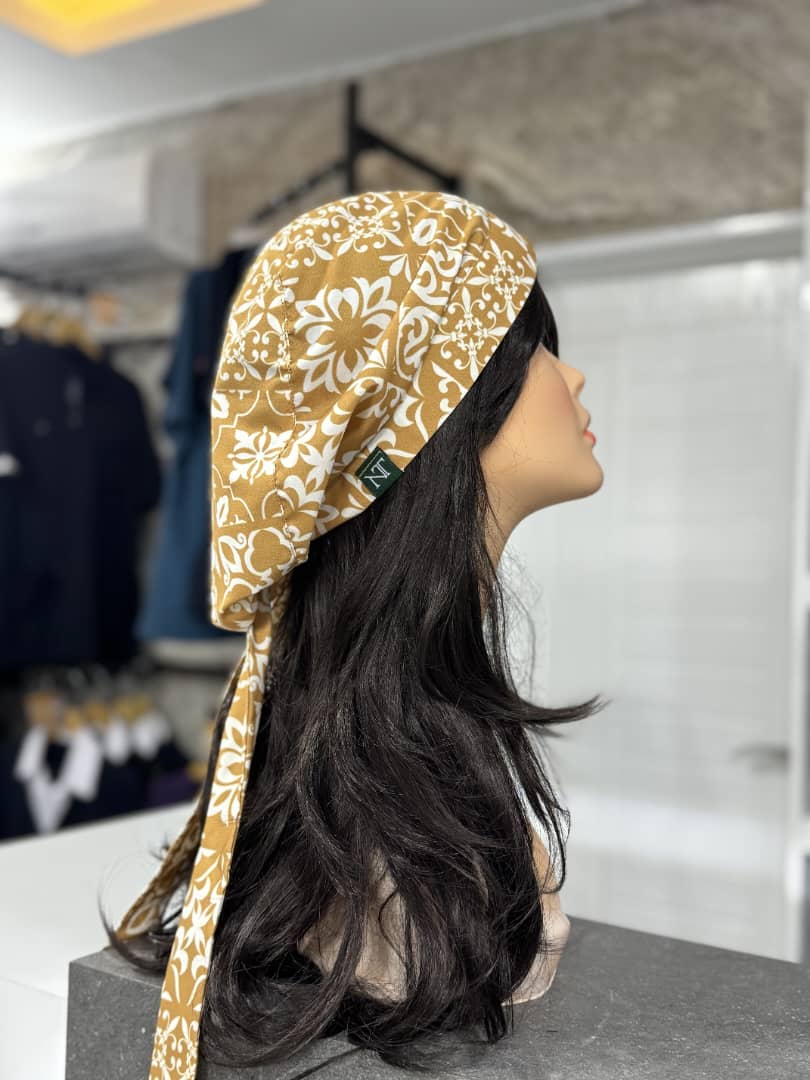 کلاه حجاب(بند بلند)-طرح پیچازی سورمه ای سفید