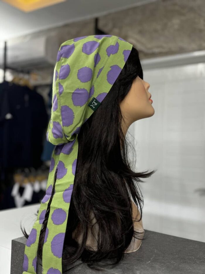 کلاه حجاب(بند بلند)-زمینه فسفری خالدار یاسی
