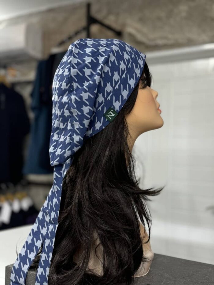 کلاه حجاب(بند بلند)-طرح پیچازی سورمه ای سفید